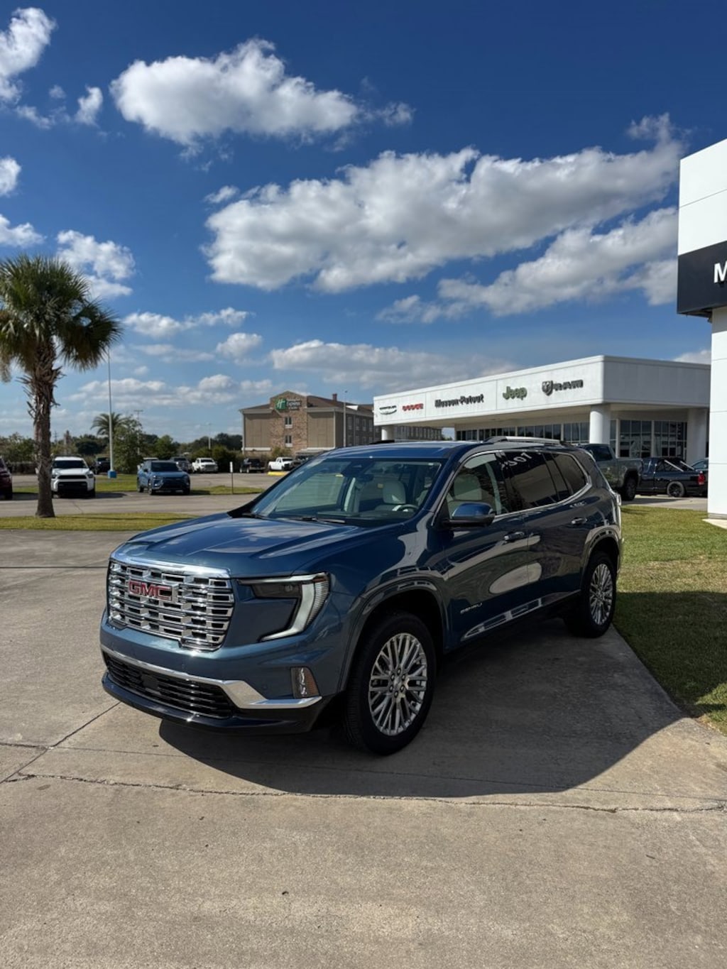 Downpour Metallic 2025 GMC Acadia Denali FWD 8-Speed Automatic 2.5L DOHC FWD, Sheer/Very Dark Atmosphere Leather.
