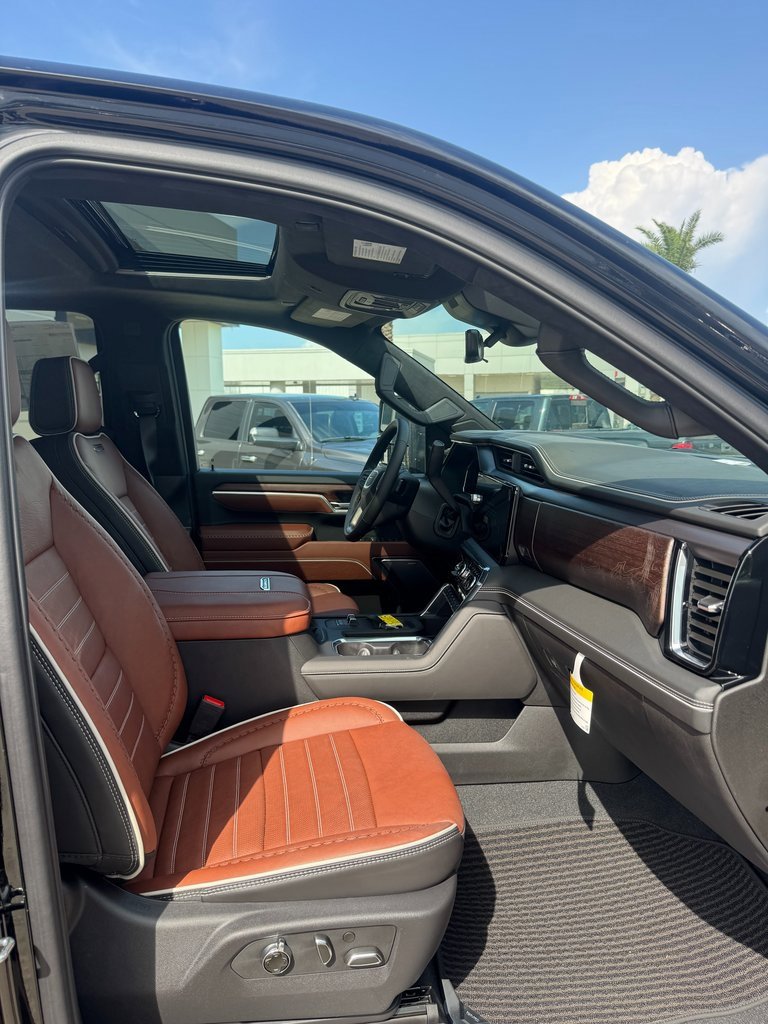 Onyx Black 2025 GMC Sierra 2500HD Denali Ultimate 4WD 10-Speed Automatic Duramax 6.6L V8 Turbodiesel 10-Speed Automatic, 4WD, Alpine Umber Leather.