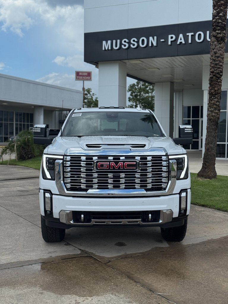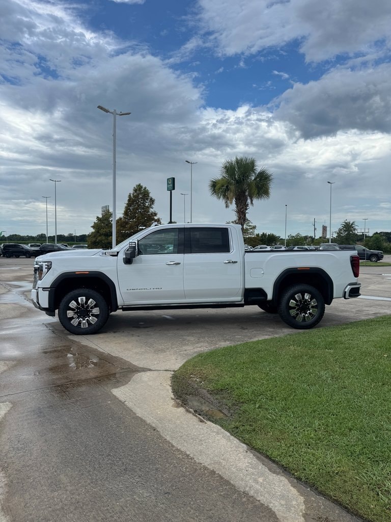 Summit White 2025 GMC Sierra 2500HD Denali 4WD 10-Speed Automatic Duramax 6.6L V8 Turbodiesel 10-Speed Automatic, 4WD, Atmosphere/Brownstone Leather.