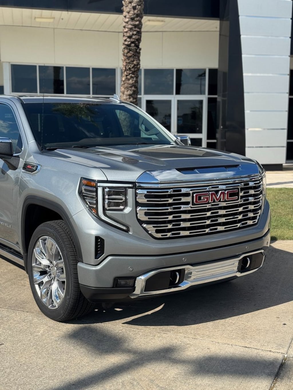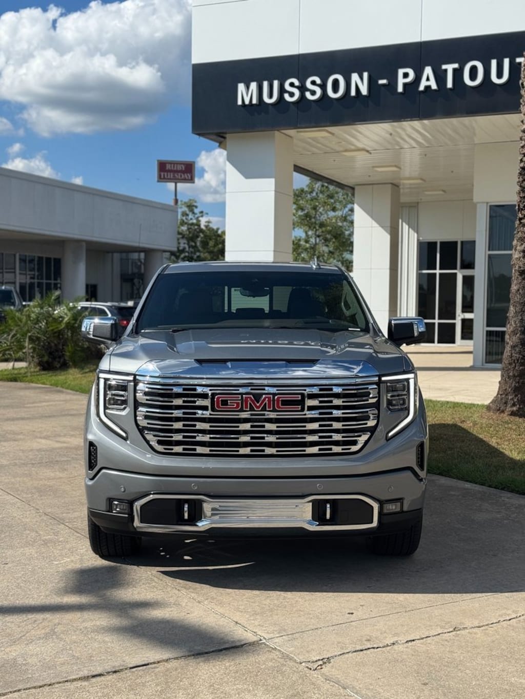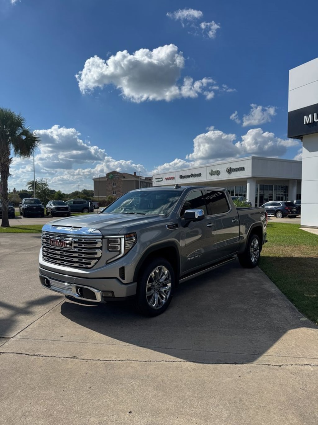 Sterling Metallic 2026 GMC Sierra 1500 Denali 4WD 10-Speed Automatic EcoTec3 6.2L V8 10-Speed Automatic, 4WD, Atmosphere/Brownstone Leather.