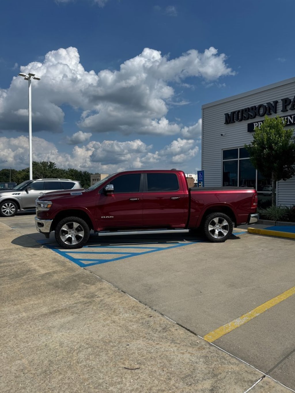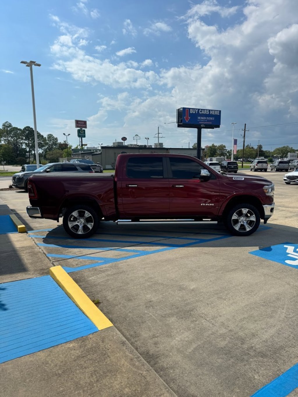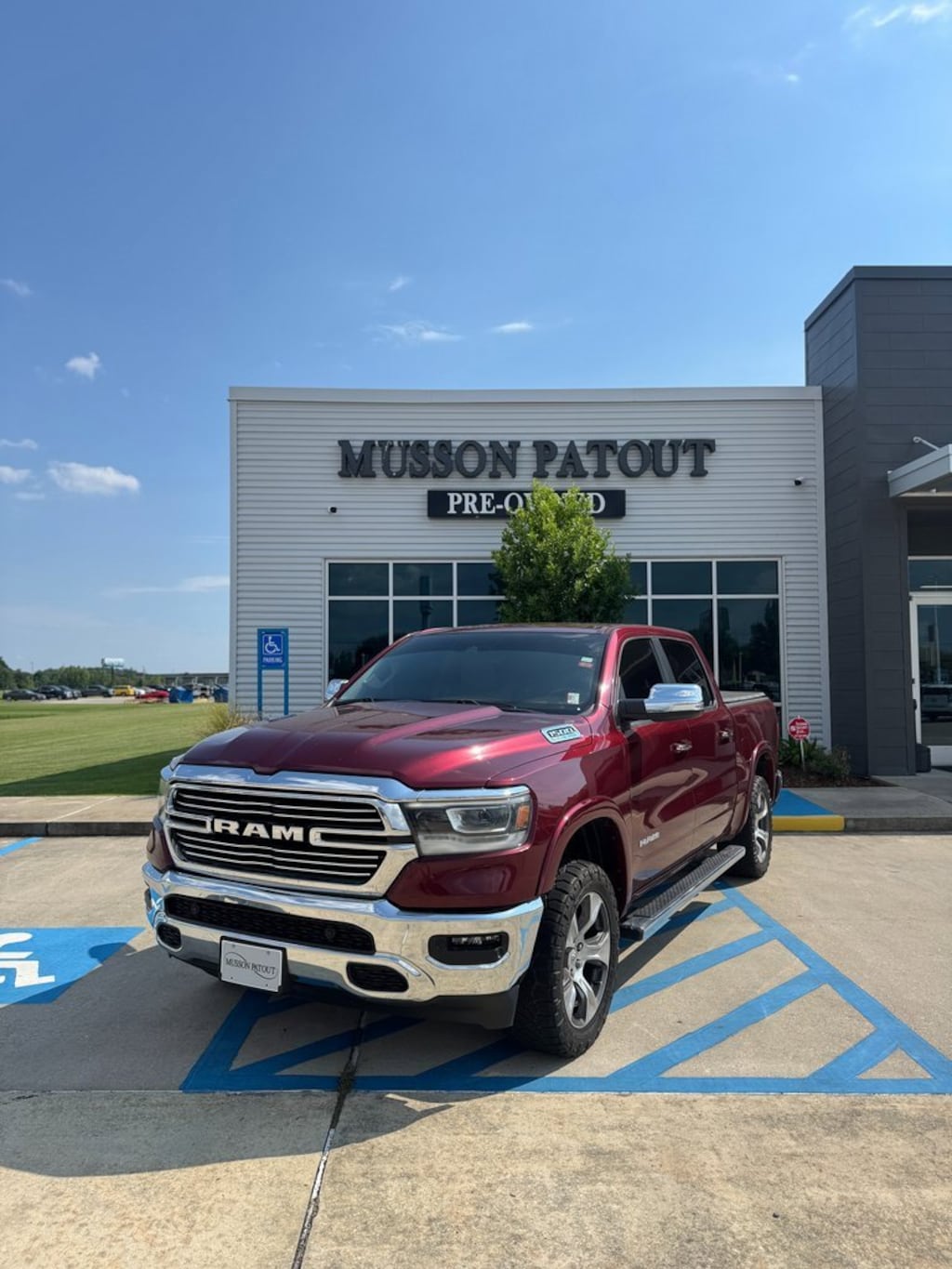 #1 Seat Foam Cushion, 10 Speakers, 23 Gallon Fuel Tank, 3 Rear Seat Head Restraints, 3.21 Rear Axle Ratio, 4 Way Front Headrests, 4-Wheel Disc Brakes, 48V Belt Starter Generator, 8.4 Touchscreen Display, ABS brakes, Adjustable pedals, Air Conditioning, Alloy wheels, AM/FM radio: SiriusXM, Anti-Spin Differential Rear Axle, Apple CarPlay, Apple CarPlay/Android Auto, Audio memory, Auto High Beam Headlamp Control, Auto-dimming door mirrors, Auto-dimming Rear-View mirror, Automatic temperature control, Brake assist, Bumpers: chrome, Chrome Exterior Mirrors, Compass, Delay-off headlights, Driver door bin, Driver Seat Memory, Driver vanity mirror, Dual front impact airbags, Dual front side impact airbags, Electronic Stability Control, Foam Bottle Insert (Door Trim Panel), For More Info, Call 800-643-2112, Front anti-roll bar, Front Center Armrest w/Storage, Front dual zone A/C, Front fog lights, Front License Plate Bracket, Front reading lights, Front Seat Back Map Pockets, Front wheel independent suspension, Fully automatic headlights, Garage door transmitter, Google Android Auto, GPS Antenna Input, Heated door mirrors, Heated Front Seats, Heated front seats, Heated Steering Wheel, Heated steering wheel, Illuminated entry, Integrated Center Stack Radio, Integrated Voice Command w/Bluetooth, Laramie Level A Equipment Group, Leather steering wheel, Leather Trim 40/20/40 Bench Seat, Low tire pressure warning, Memory seat, MOPAR Front & Rear Rubber Floor Mats, Occupant sensing airbag, Outside temperature display, Overhead airbag, Overhead console, Panic alarm, ParkSense Front/Rear Park Assist w/Stop, ParkView Rear Back-Up Camera, Passenger door bin, Passenger vanity mirror, Pedal memory, Power 4-Way Driver Lumbar Adjust, Power 4-Way Passenger Lumbar Adjust, Power 8-Way Driver & Passenger Seats, Power door mirrors, Power driver seat, Power passenger seat, Power steering, Power windows, Quick Order Package 27H Laramie, Radio data system, Radio: Uconnect 4 w/8.4 Display, Rain Sensitive Windshield Wipers, Rear 60/40 Folding Split Recline Seat, Rear anti-roll bar, Rear seat center armrest, Rear step bumper, Rear window defroster, Remote keyless entry, Remote Tailgate Release, Security system, SiriusXM Radio Service, SiriusXM Satellite Radio, Speed control, Split folding rear seat, Steering wheel mounted audio controls, Tachometer, Tailgate Ajar Warning Lamp, Telescoping steering wheel, Tilt steering wheel, Traction control, Trip computer, Turn signal indicator mirrors, Variably intermittent wipers, Ventilated Front Seats, Ventilated front seats, Voltmeter, Wheels: 20 x 9 Premium Paint/Polished. Odometer is 29895 miles below market average!Delmonico Red Pearlcoat 2021 Ram 1500 Laramie 4WD 8-Speed Automatic HEMI 5.7L V8 Multi Displacement VVTMusson Patout Automotive Group proudly serves drivers from St. Martinville, Loreauville and Abbeville in New Iberia, LA with a maintained supply of sought-after new and pre-owned vehicles. Our family-owned and operated Automotive Group is committed to the community of New Iberia, LA. When Chrysler, Dodge, Jeep, Ram, GMC, Buick and Toyota drivers throughout Louisiana arrive at our location, customers are greeted by our Staff of friendly and courteous professionals who strive to create a pleasant atmosphere and smooth buying process. Come see us or visit us on the web at www.mussonpatout.com.
